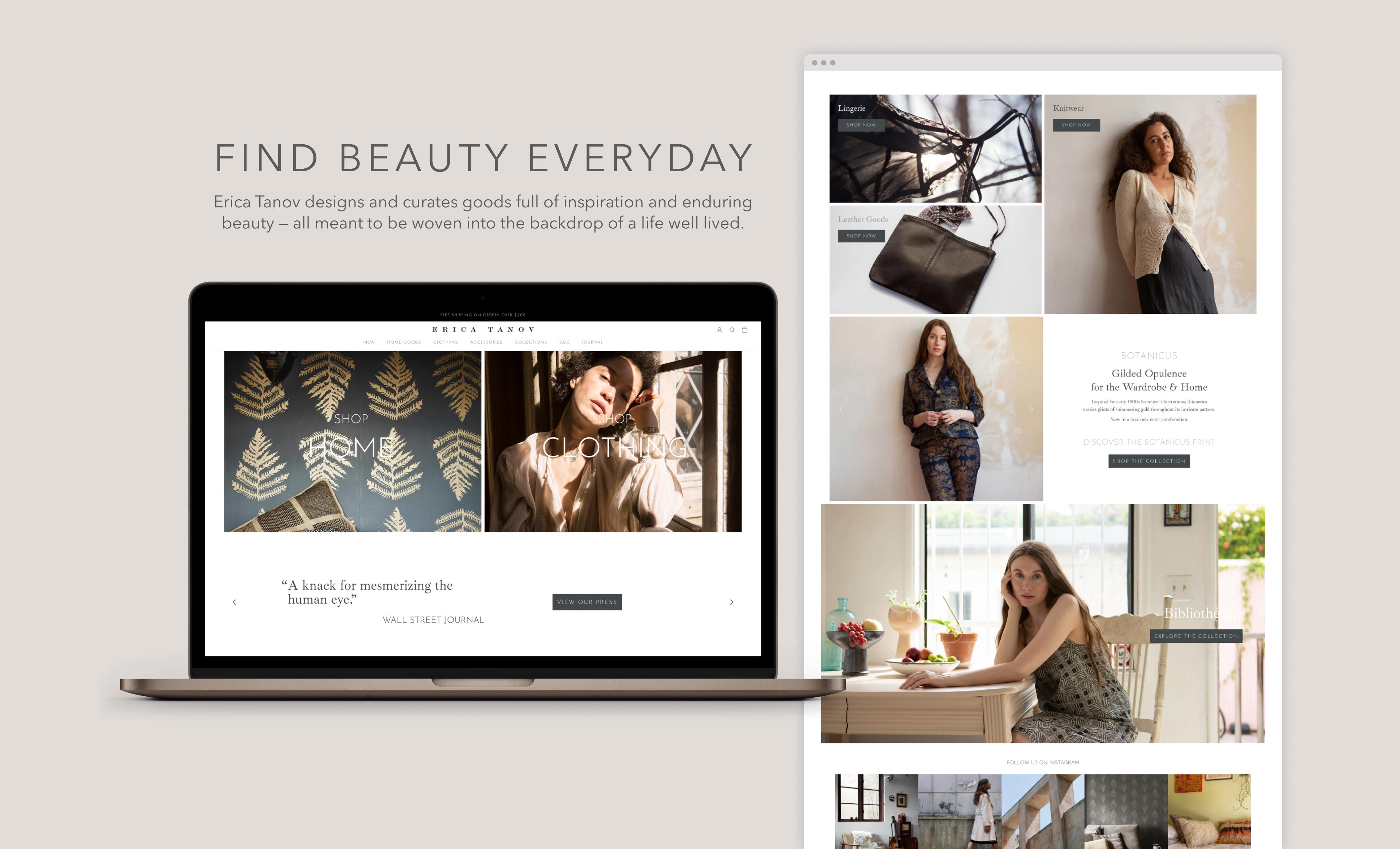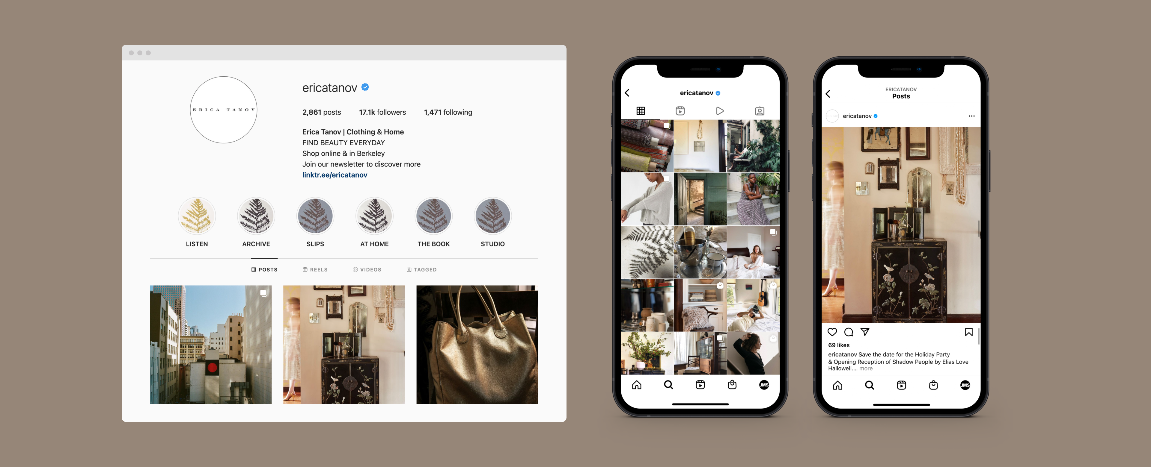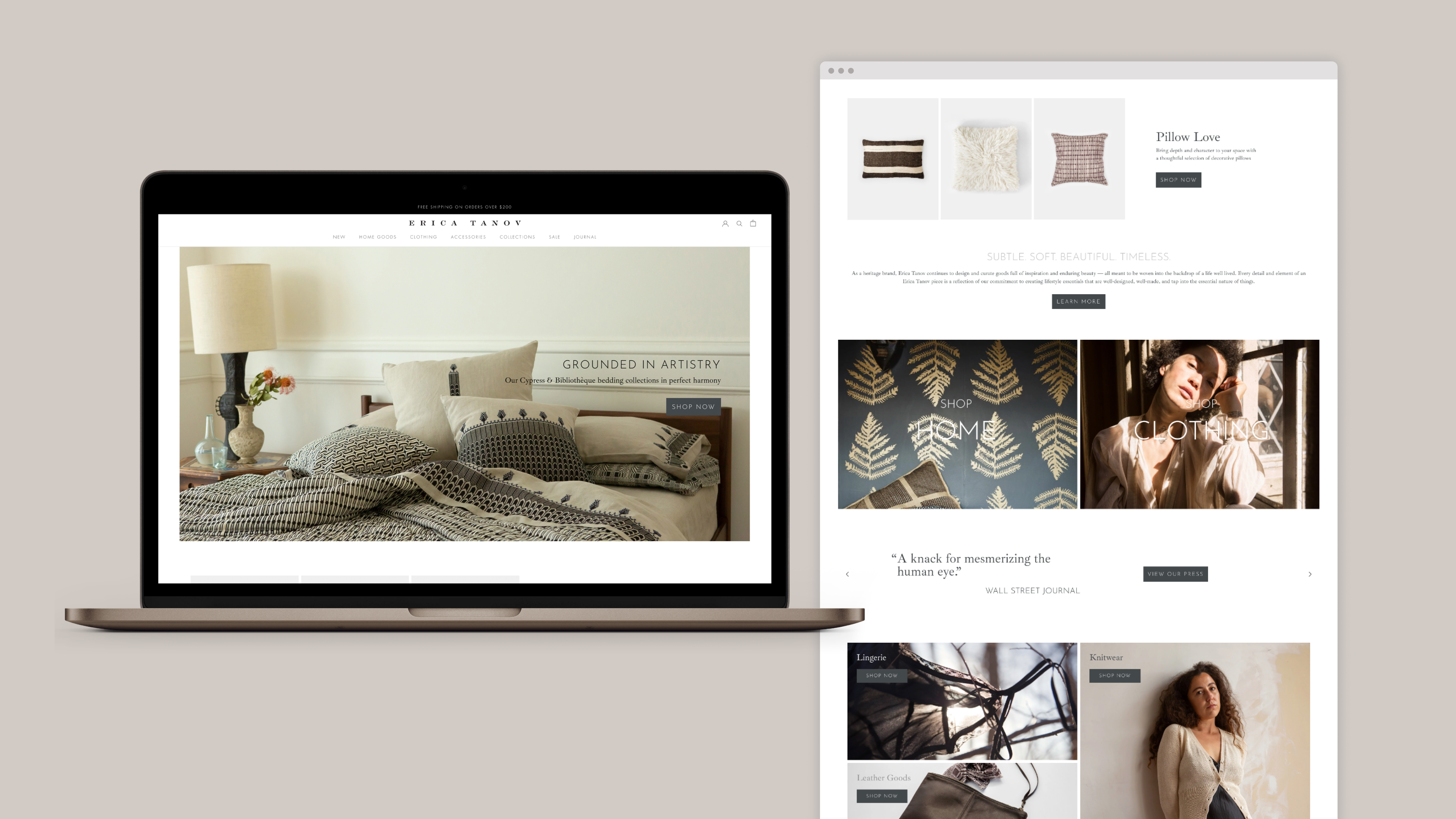 In 2020, beloved designer Erica Tanov tasked JMS with rethinking her brand’s approach to garner more meaningful online engagement. With the pandemic raging on and face-to-face retail environments indefinitely put on hold, JMS worked on imparting the Erica Tanov message to customers through different means. To do so, we focused our messaging around the concept of a connected thread within the Erica Tanov community–one that embodies the inspired, livable, curated sense of luxury each of her products possess.