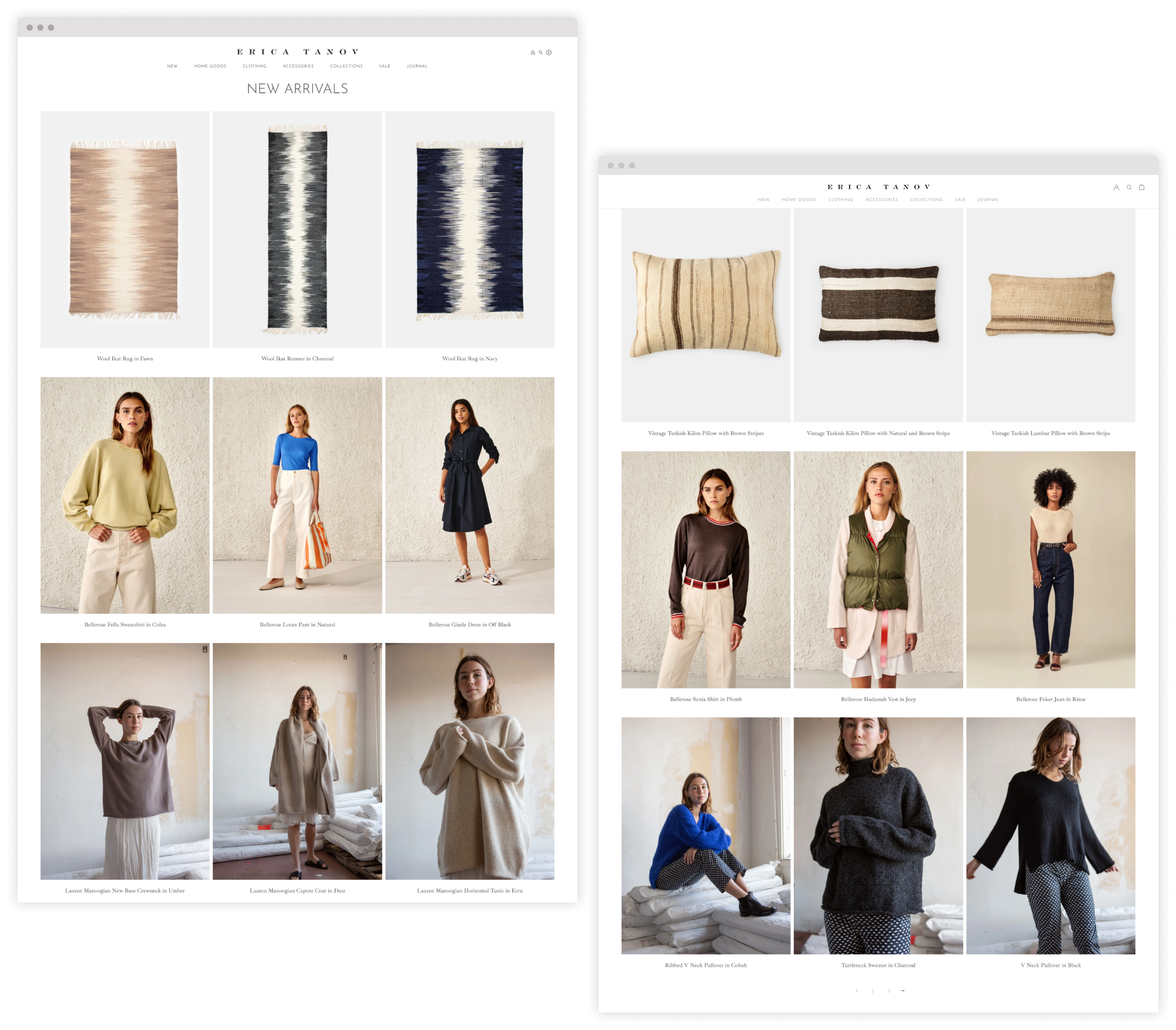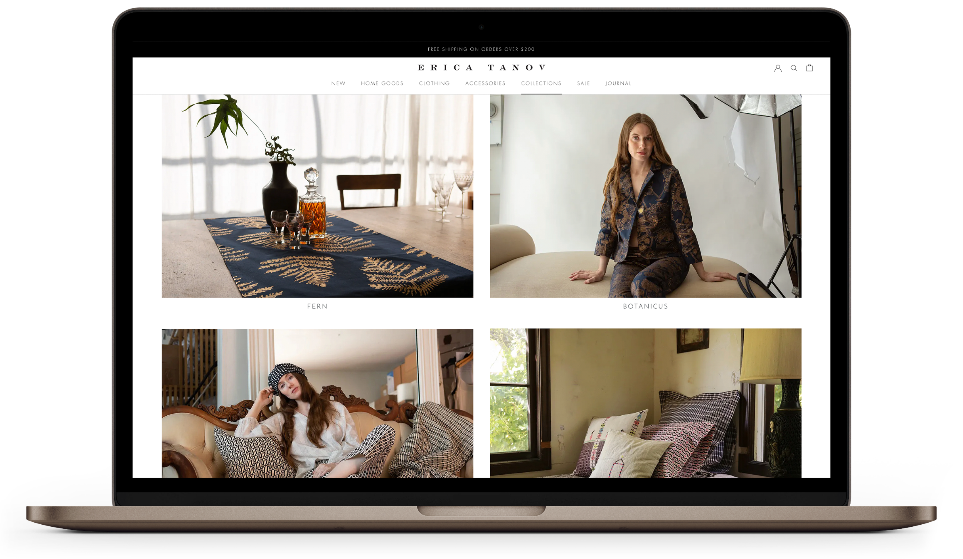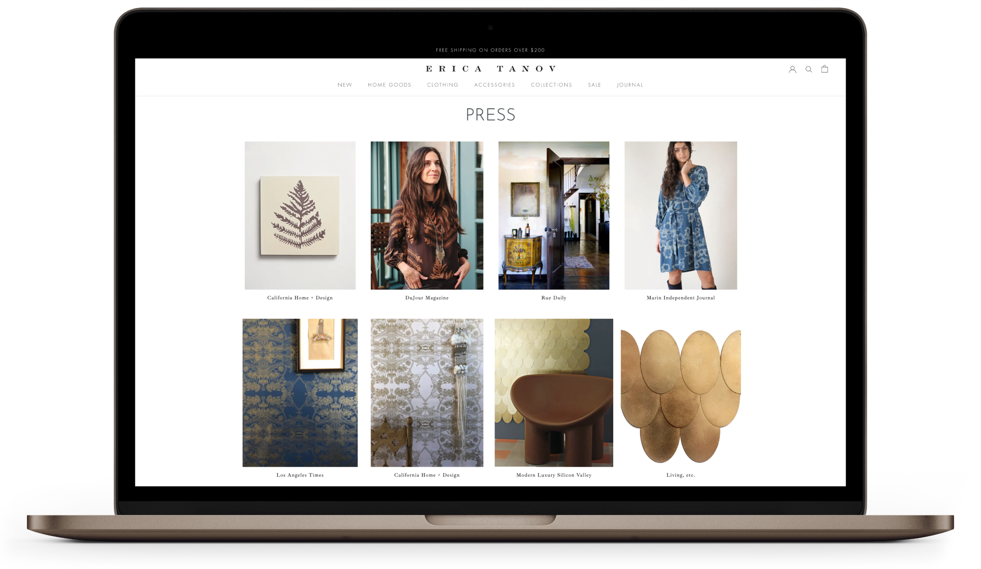In 2020, beloved designer Erica Tanov tasked JMS with rethinking her brand’s approach to garner more meaningful online engagement. With the pandemic raging on and face-to-face retail environments indefinitely put on hold, JMS worked on imparting the Erica Tanov message to customers through different means. To do so, we focused our messaging around the concept of a connected thread within the Erica Tanov community–one that embodies the inspired, livable, curated sense of luxury each of her products possess.
