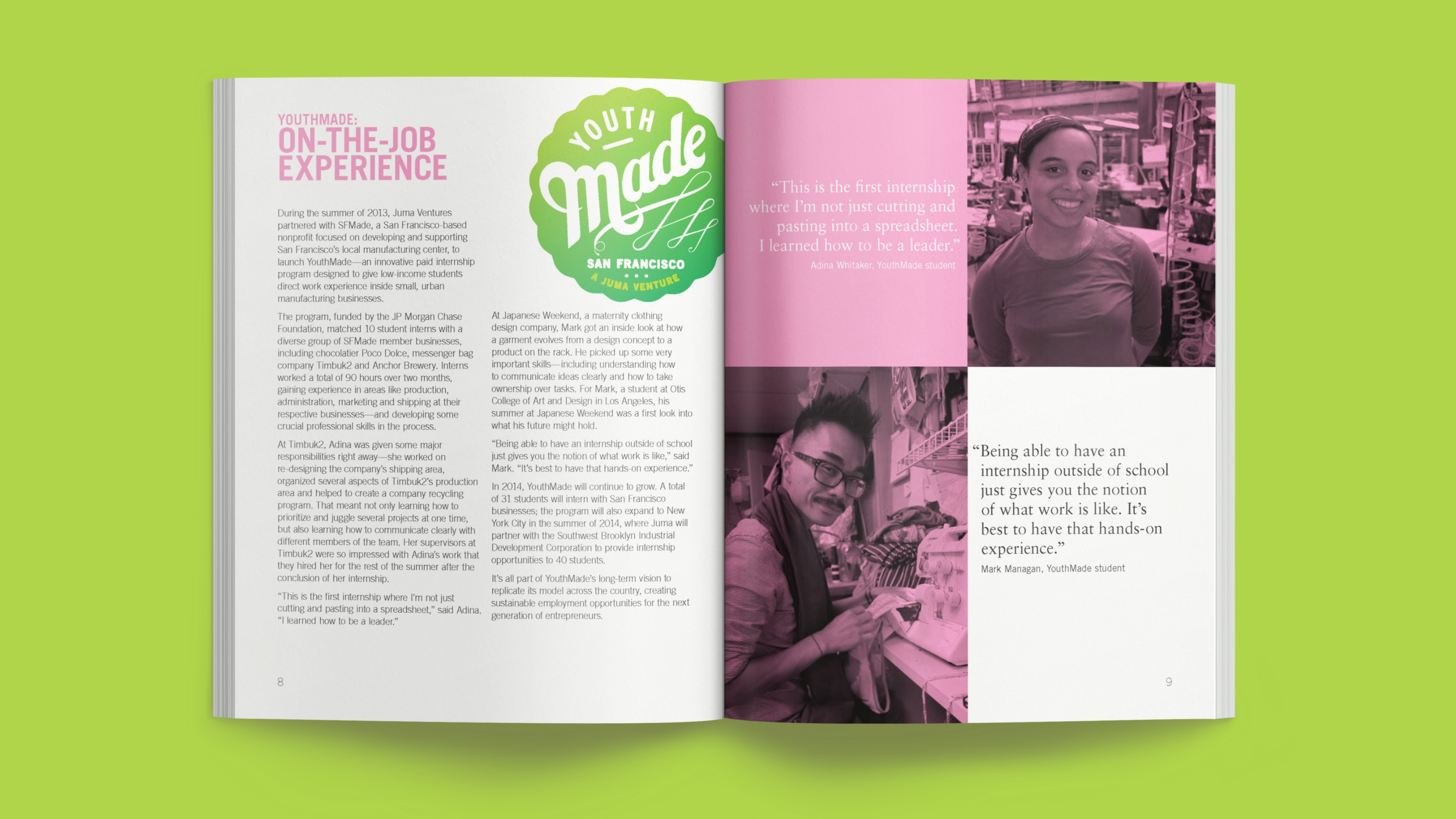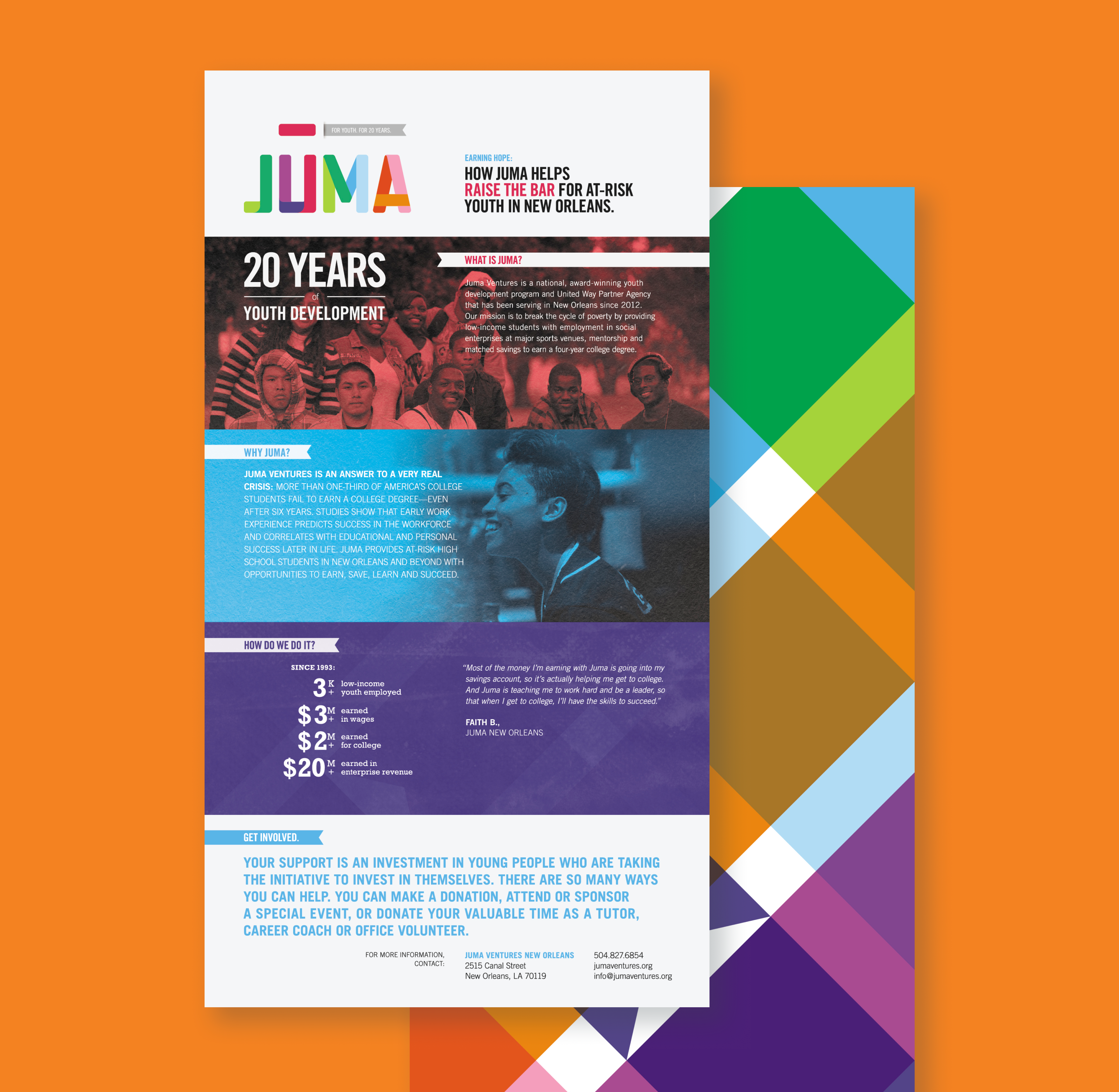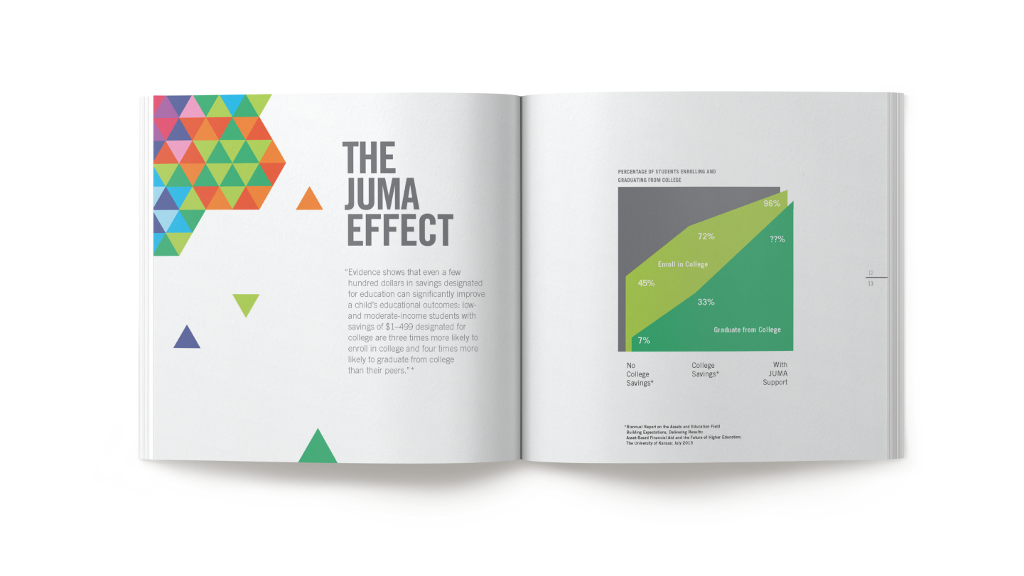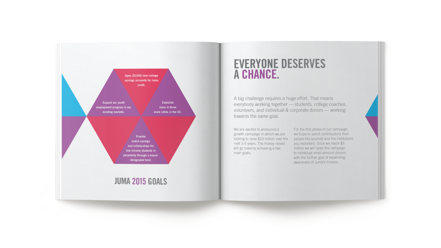 Since 1993, Jūma has empowered thousands of underserved teens in building the future of their dreams through its practical, actionable services. They aid teenagers in finding a job, setting up a bank account, and offering financial counseling and support as they cross the critical growth period of high school into college. Their team had been doing this important work for years, but the branding and marketing wasn’t adequately substantiating their mission and output. Enter JMS, who set to work building Jūma a new identity and supporting collateral, inspiring web experience, and a marketing program featuring Jūma students sharing their personal, insightful stories. JMS focused on elevating the brand with its most inspiring asset—the incredible, hardworking individuals whose lives have been changed by their relationship with Jūma. The result was something bright, hopeful, and hard to ignore—just like the teenagers they serve.