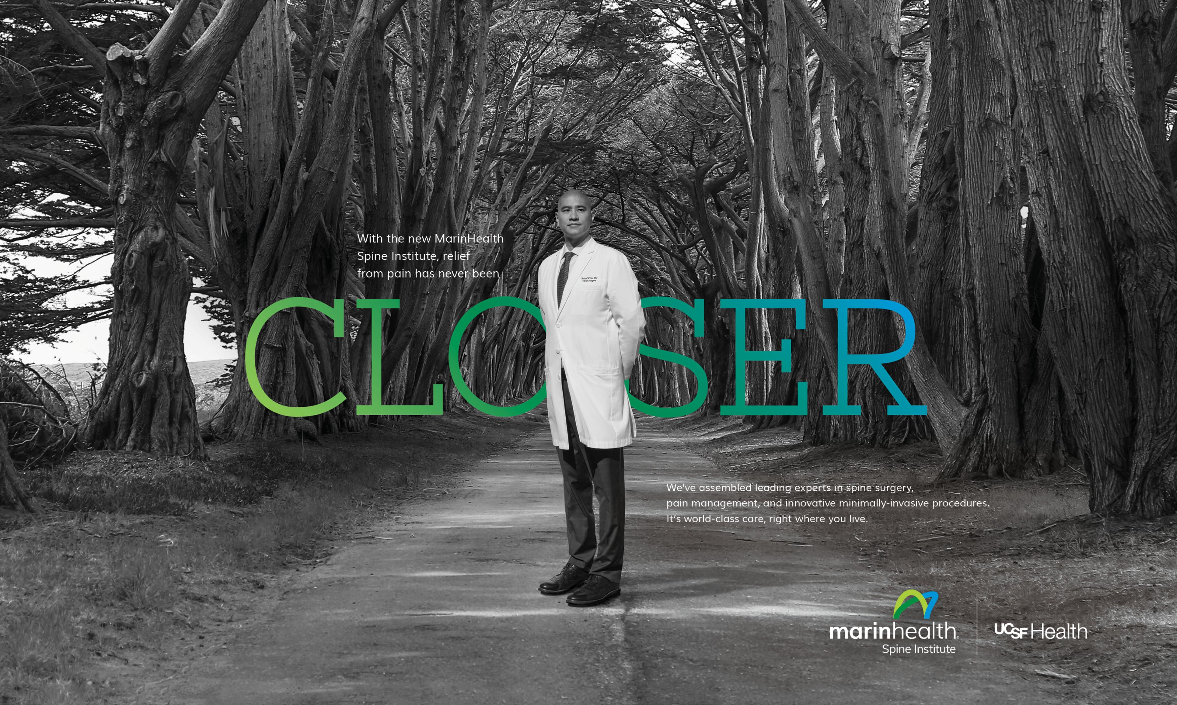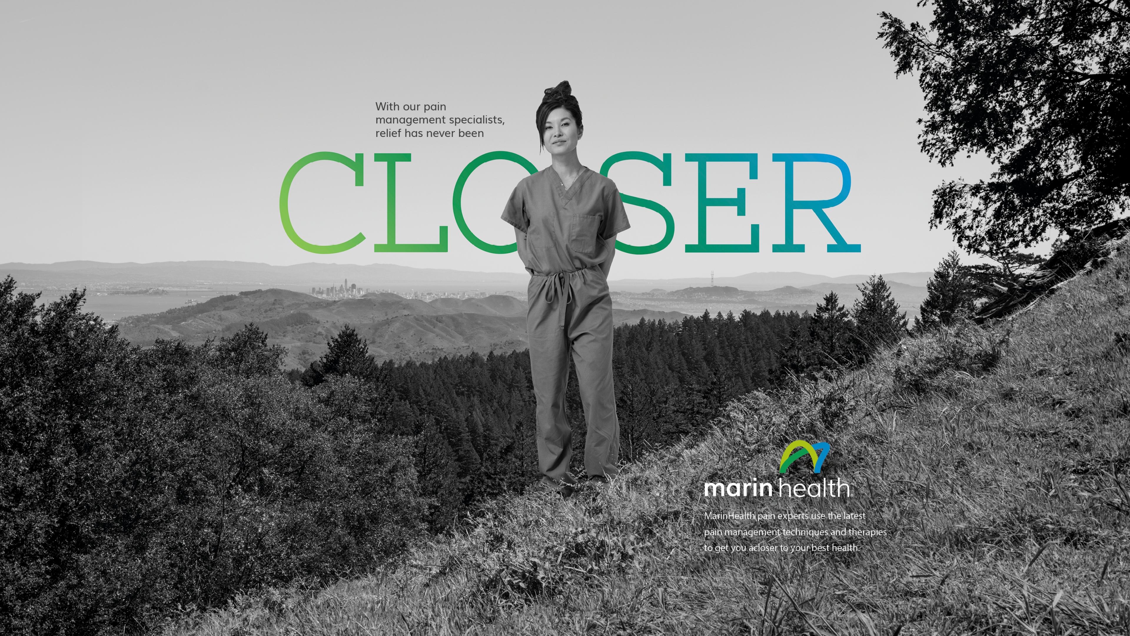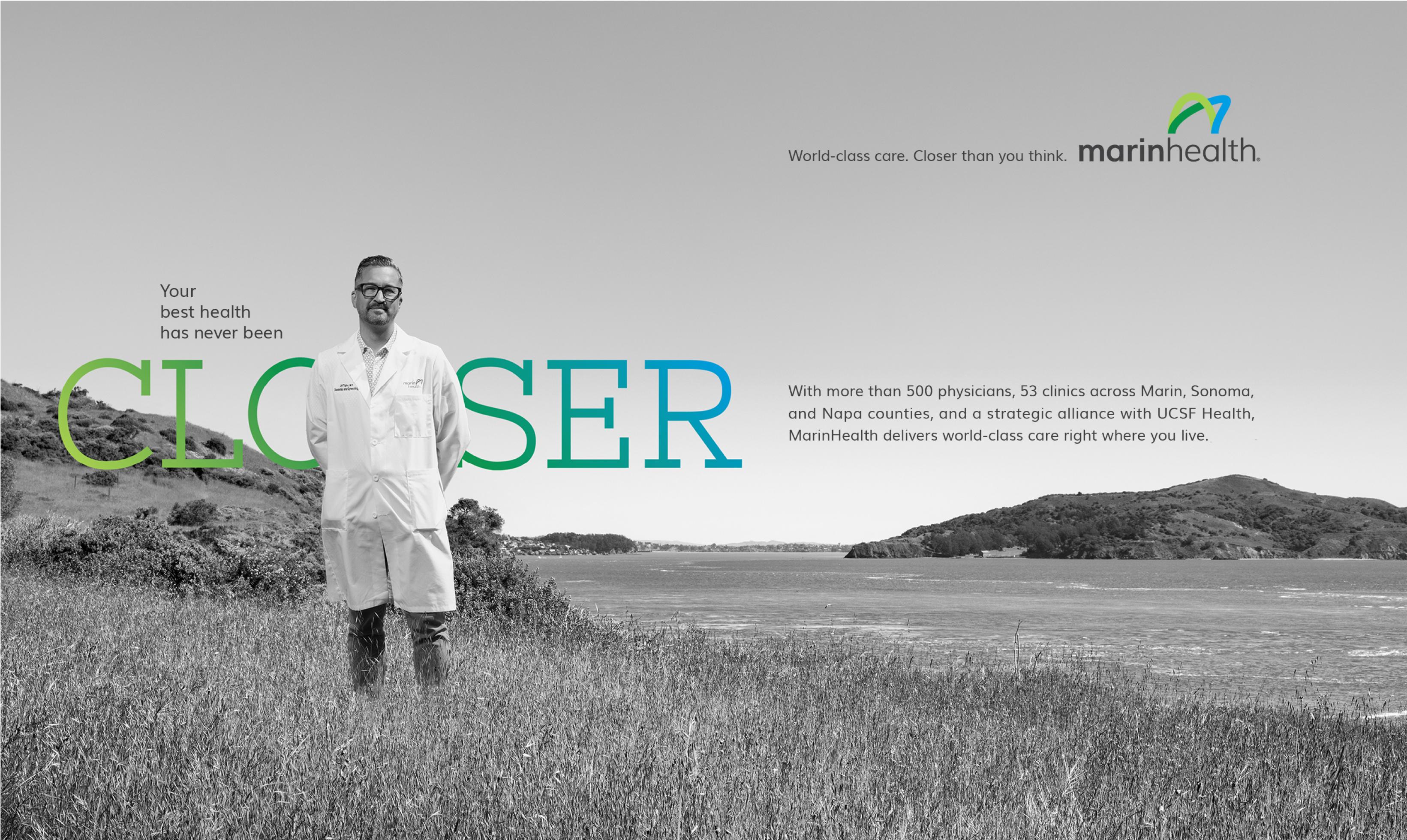 We developed a new brand positioning, turning their proximity into something much bigger… Not just closer to you, but putting you closer to your very best health. The campaign emphasized MarinHealth's commitment to world-class care by portraying their network of specialists in landmarks around the North Bay to illustrate their accessibility, while other aspects of the campaign simply introduced their innovations and accolades to audiences. The Closer campaign has been implemented in social, broadcast, OOH, and the new brand adopted network-wide to employees and patients.